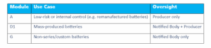Here’s where misunderstandings frequently happen. For example, a company producing small batches of specialized industrial batteries may assume they fall under D1—but without a formal quality system, such as ISO 9001 in place, that route isn’t available. In those cases, Module G applies instead, which means each battery must undergo individual verification by a Notified Body. That represents a significantly different level of effort, oversight, and cost.